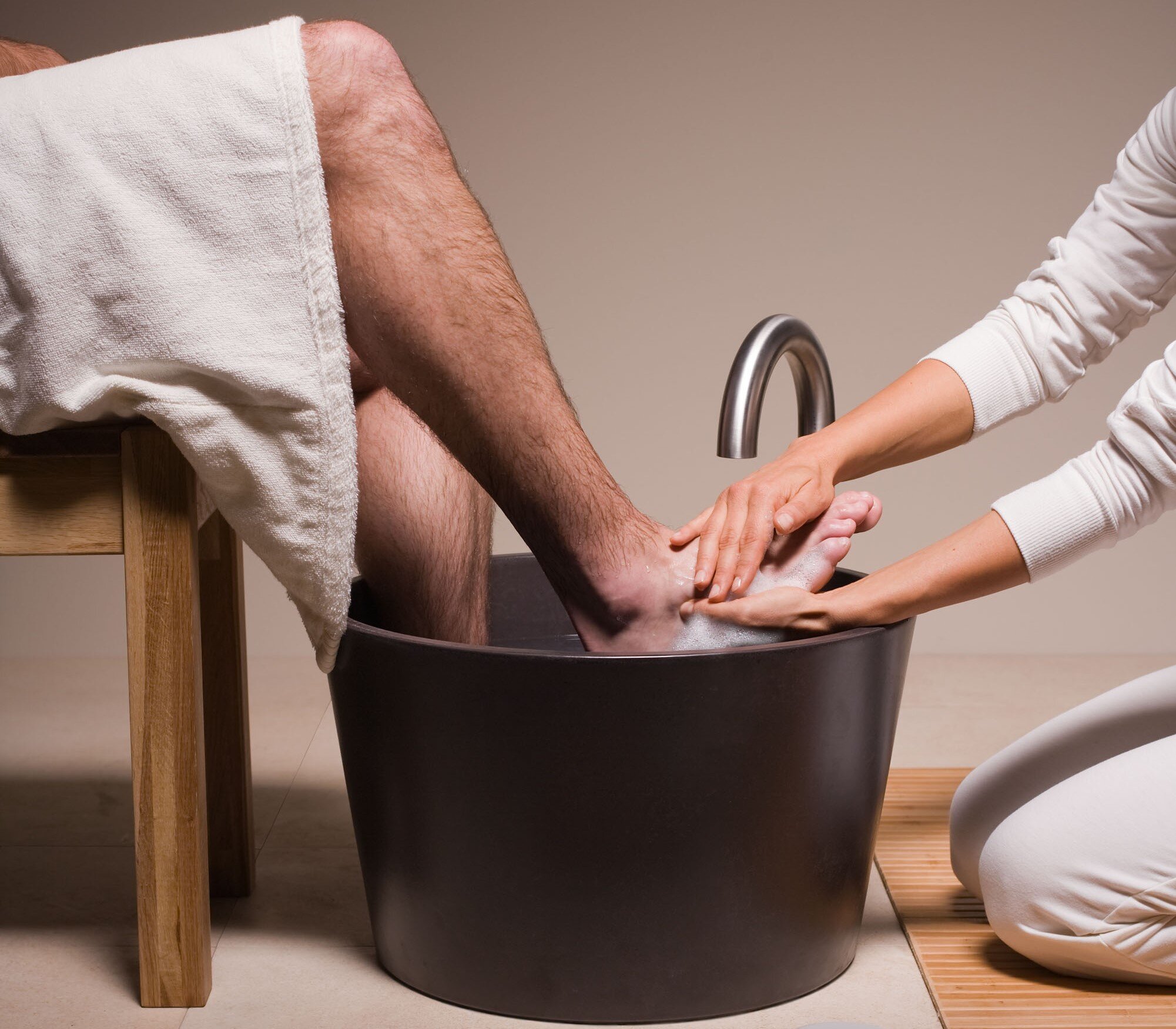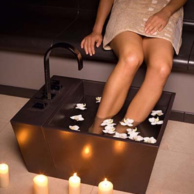 The foot bath sputtering system by WDT Werner combined with the Sommerhuber foot basin enables either warm or cold foot bath applications. After the automatic filling, the foot reflex zones are pleasantly stimulated. The integrated disinfection concept ensures maximum hygiene.